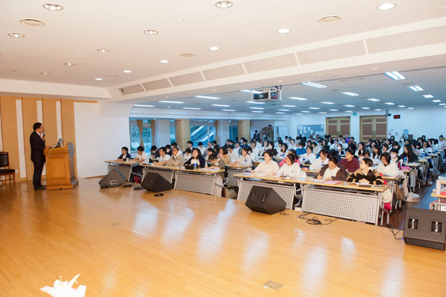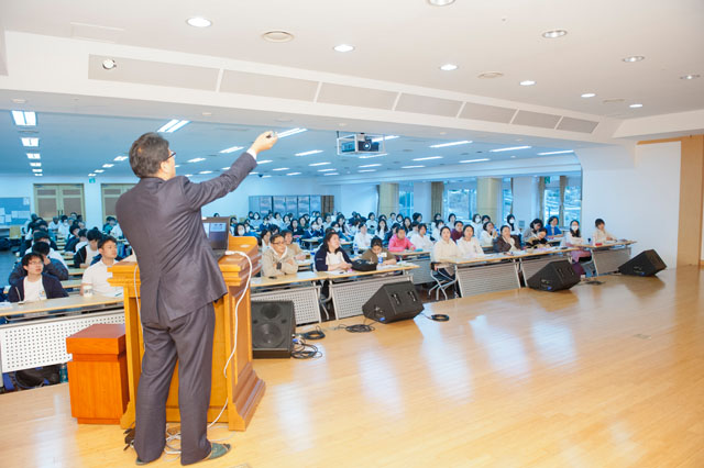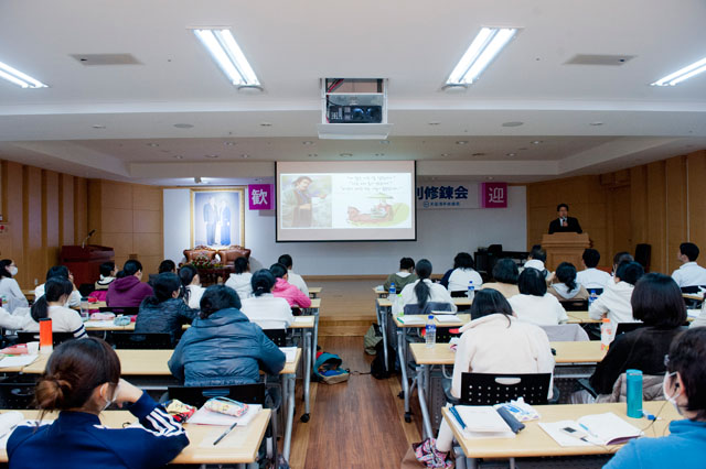 △2015년 12월 22일 "제200차40일수련회"에서 한국팀, 일본팀, 국제팀의 합동 "전도특별강의"가 진행되었습니다.
